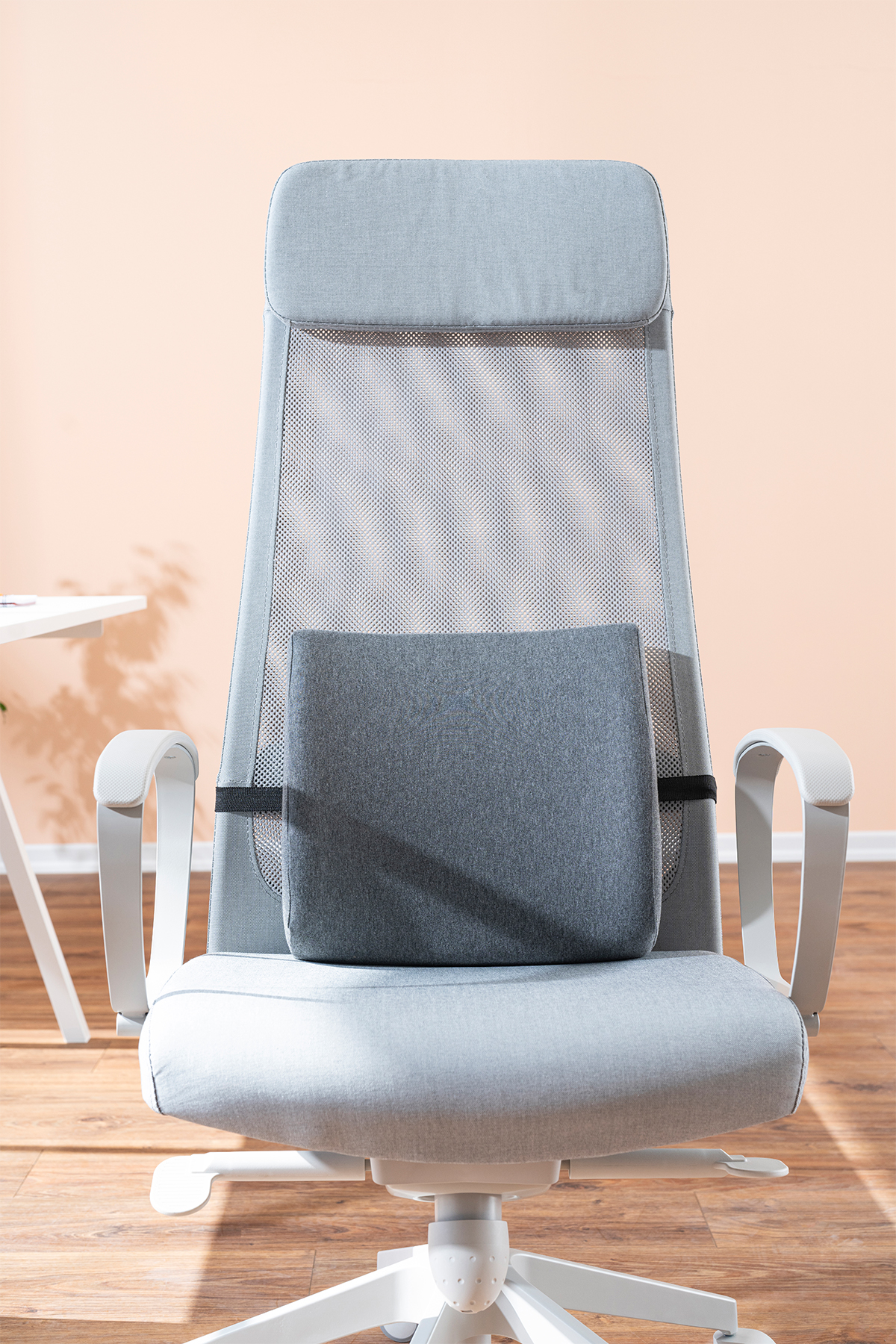 Bel boşluğunu doldurarak omurga hizasını korur. Otururken kamburlaşmayı önlemeye yardımcı olur.